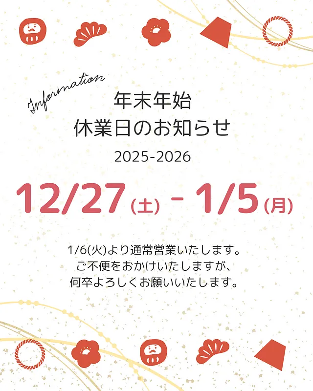 当店は日曜・祝日・第二土曜日が定休日となっております。休業中のメールやLINEでのお問い合わせは翌営業日以降に順次対応させていただきます。
