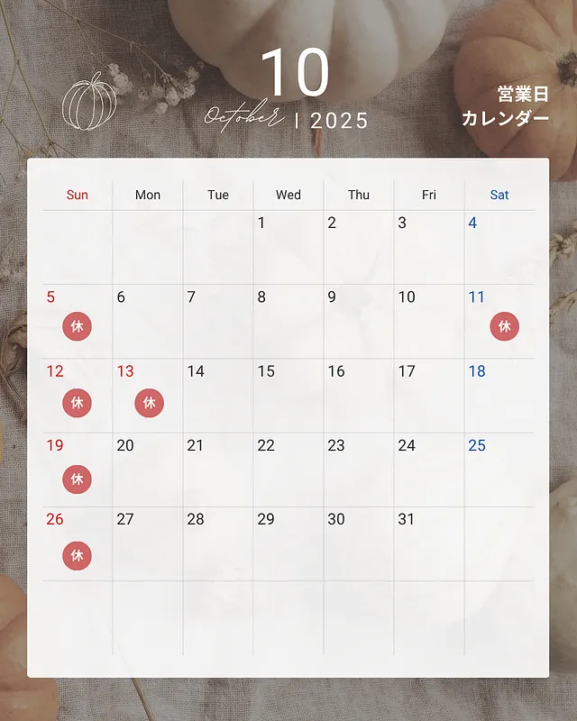 当店は日曜・祝日・台に土曜日が定休日となっております。休業中のメールやLINEでのお問い合わせは翌営業日以降に順次対応させていただきます。